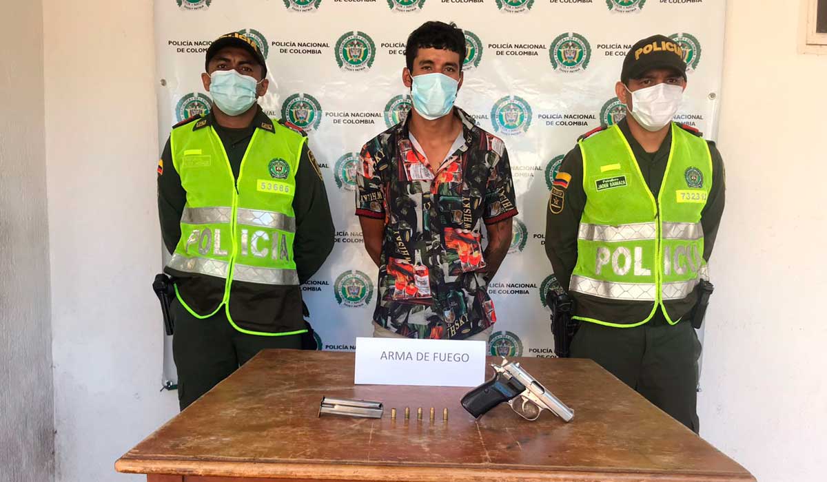 “Este caso se presentó mediante labores de patrullajes, solicitud de antecedentes y registros a personas en el barrio Centro, cuando se escuchan unas detonaciones similares a las realizadas por arma de fuego, observando así mismo a una persona de sexo masculino que viste camiseta color negro con dibujos de diferentes colores, quien al notar la presencia policial emprende la huida hacia el sector de la carrera 6, a quien sin perder de vista se observa que arroja un elemento color plateado a un costado de una droguería. Al momento de recoger el elemento nos percatamos que es un arma de fuego”, señaló una fuente judicial a este medio.