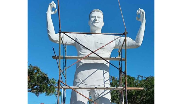 La estatua en honor al delantero samario y capitán de la Selección Colombia, Radamel Falcao García, con los brazos levantados hacia el cielo como lo hace cuando celebra los goles, se encuentra en la última fase de cimentación.
