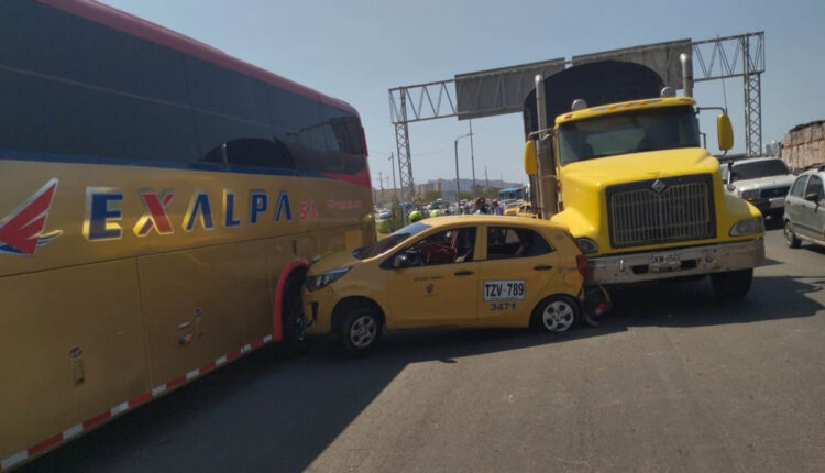 Todo parece indicar que el conductor del pesado vehículo no midió la distancia y cuando quiso detenerse, golpeó por detrás al taxi, este terminó contra un bus de transporte interdepartamental.