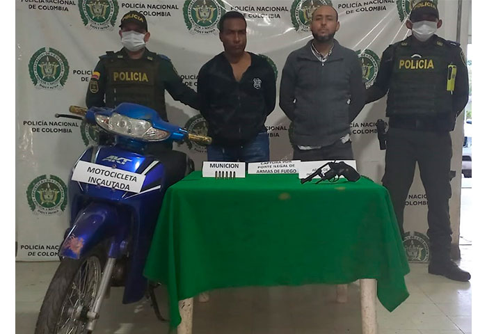 Dos hombres fueron capturados en las últimas horas por la Policía Cesar, portando un arma de fuego, bajo la modalidad de caleta, en una motocicleta en la vía que de Valledupar conduce al municipio de Agustín Codazzi.