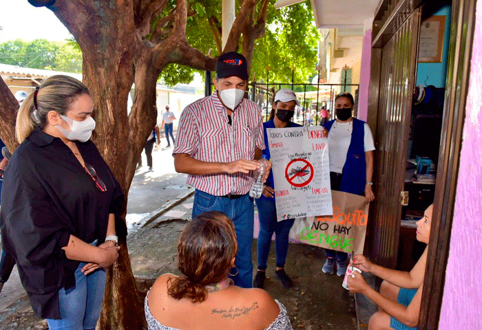 “Iniciamos un trabajo mancomunado que no debe ser solo institucional, sino de toda la comunidad. Los invitamos a comprometerse a erradicar los criaderos de mosquitos. Hoy hemos hecho un censo en el barrio La Victoria, donde se han presentado el mayor número de casos y posibles muertes por causa de dengue. Hemos encontrado que de cada 10 casas 8 están positivas con criaderos”, expresó el secretario Local de Salud, Holmer Jiménez Ditta.