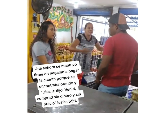 “¿Usted me viene a decir a mí que Dios le dijo que viniera a comprar su comida gratis?”, fue la repuesta del cajero del supermercado quien tomó la bolsa con el mercado de la mujer y luego le solicitó que volviera a poner los productos de donde los tomó.