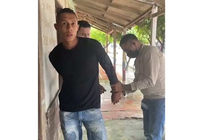 En la grabación se evidencia el instante en que el presunto sicario es interceptado por funcionarios del Cuerpo Técnico de Investigación (CTI), a las afueras de una vivienda del municipio de Algarrobo, Magdalena, donde presuntamente se fue a esconder después de perpetrar el doble crimen.