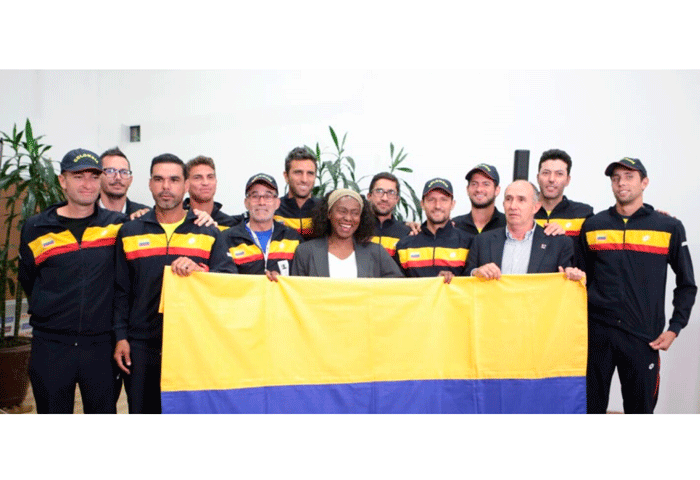 El equipo colombiano de Copa Davis, que enfrentará a Turquía el 17 y 18 de septiembre en el Carmel Club de Bogotá, recibió el pabellón nacional a manos de la ministra del Deporte, María Isabel Urrutia. El evento se llevó a cabo en la sede de la institución en la capital del país.