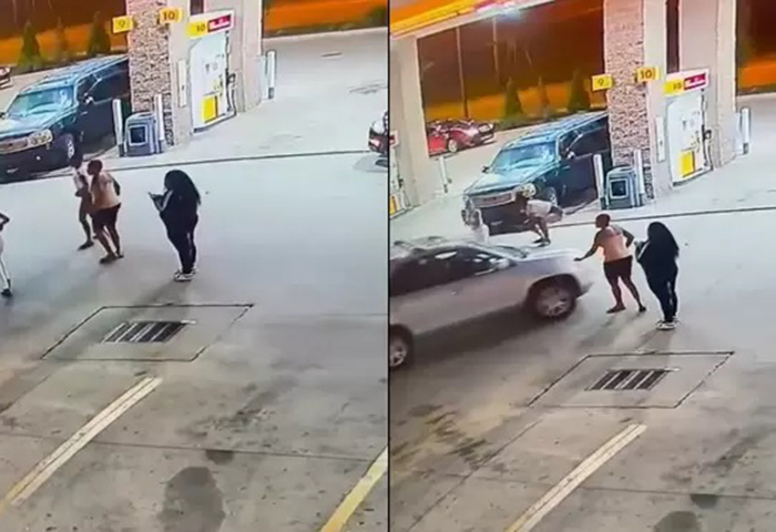 Un video se ha hecho popular en redes sociales donde se observa el momento en el que una mujer logra un osado salto para terminar encima de un carro que iba a toda velocidad en una estación de gasolina de Estados Unidos.