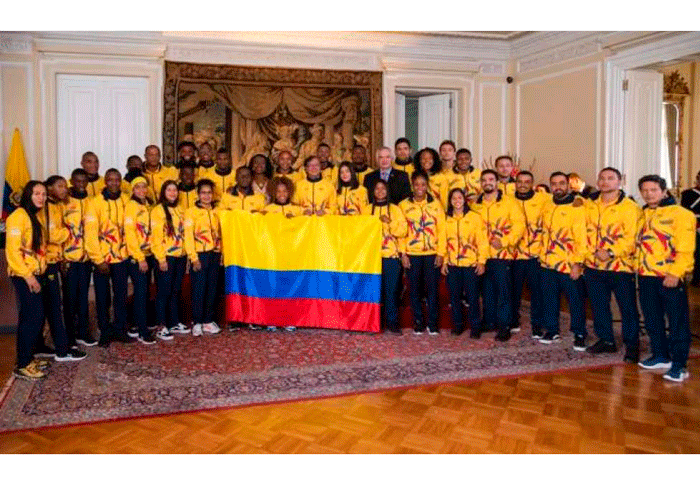 Dos de los 498 atletas que integran la delegación nacional, recibieron del primer mandatario el pabellón nacional. La patinadora, Gabriela Rueda, y el levantador de pesas, Santiago Rodallegas, como abanderados, además de expresar el orgullo que les genera serlo, agradecieron el apoyo del Gobierno para su preparación hacia el primer evento del ciclo olímpico hacia París 2024.