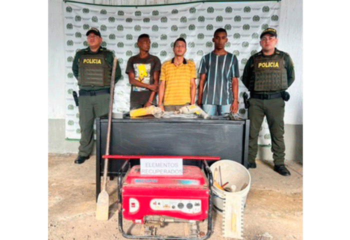 Mediante patrullaje en el barrio Las Palmas, municipio de Curumaní, Cesar, fueron capturados tres sujetos señalados de haber hurtado varios elementos de construcción al ingresar a una vivienda del sector.