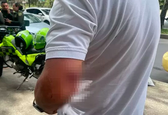“Dejé una carrera en inmediaciones de Plazas del Bosque, allí una señora se iba a bajar y el conductor de un particular comenzó una pitadera desesperante; le dije que esperara a que se bajara la señora y siguió, luego me insultó, yo le respondí, me bajé con arma blanca al verlo con una pistola, luego me hizo cuatro disparos, impactando dos, uno en mi brazo y otro en mi muslo”, manifestó el taxista.