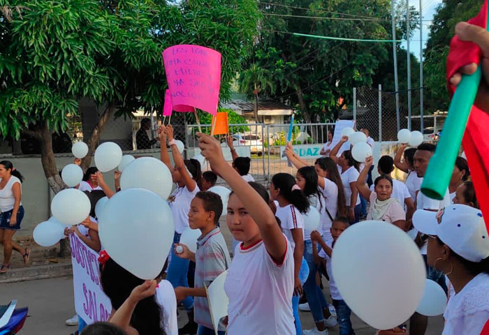 La manifestación se llevó a cabo la tarde del lunes festivo. La comunidad en especial la del barrio Villa Esperanza, donde reside la víctima, recorrieron varias calles de la población vestidos de blancos y con globos en las manos, los cuales elevaron al cielo pidiendo justicia por el aberrante hecho que vivió la pequeña.