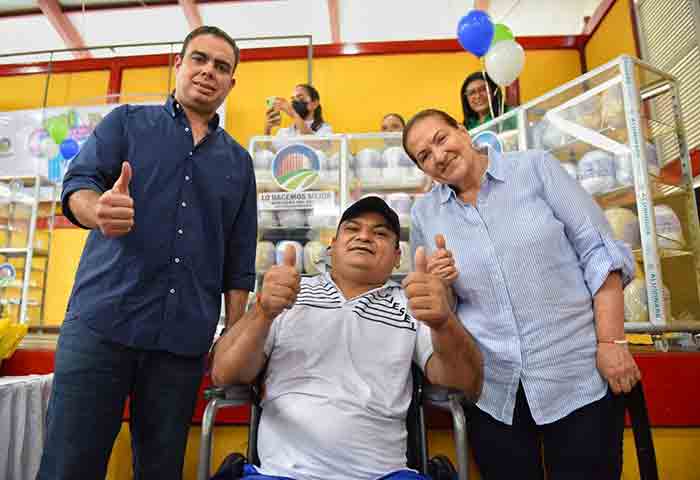 “Estoy contenta por la oportunidad que nos brinda la Gobernación del Cesar; es la primera vez que se ve esto en los discapacitados y aunque nosotros somos capaces de emprender, necesitamos a alguien que nos colabore. Nos sentíamos frustrados, pero llegó un gobernador que nos da la oportunidad de demostrar de que somos capaz”, dijo Milena Rodelo al recibir un carro de comidas rápidas, una cocina industrial y utensilios de cocina para iniciar con su restaurante.