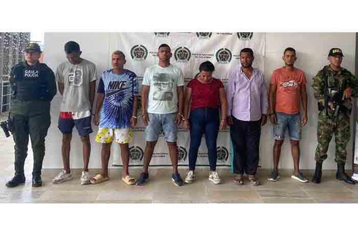 Mediante orden judicial fueron capturados Fermin Eduardo Ballesteros Carrillo, alias “Fermin”, Sara Elena Salazar Hormanaza alias “Sara”, Dagoberto Galán Pérez alias “Dago”, Breiner Javier Caro Rodríguez alias “El barón”, Jaime Enrique Caro Avendaño alias “Coco” y Jesús David Melo Alban alias “Brayan”, por el delito de concierto para delinquir agravado con fines extorsivos, homicidio, porte ilegal de armas de fuego y extorsión; así mismo, se capturo en flagrancia a un sujeto por el delito de fabricación, tráfico, porte o tenencia de armas de fuego, accesorios, partes o municiones.