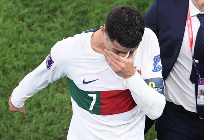Cuando el colegiado pitó el final del partido, Cristiano Ronaldo abandonó rápidamente el terreno de juego con lágrimas en los ojos.