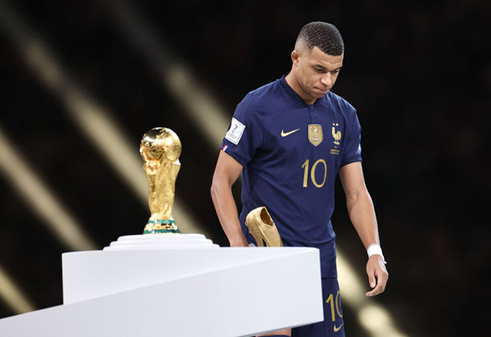 Publicado poco antes de tomar el vuelo de vuelta desde Catar, el mensaje está acompañado de una foto del jugador emblema de la selección con rostro serio y con el trofeo de máximo goleador, gracias a sus ocho goles anotados en el torneo, además de un emoji de la bandera francesa y otro con las manos juntas.