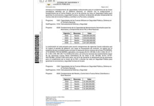 También se buscan asegurar vigencias futuras, para la reparación de los motores: “línea PT6 SERIES, JT15 SERIES, PW100 SERIES, aplicables a los equipos B-212, SR-560, A-29, C-208, AC-47, T- 27, C-90, C-95, AW-139, T-6, B-300 entre otros, así como los servicios de mantenimiento mayor de las aeronaves Fuerza Aérea Colombiana de las flotas C-130, SR-560, B-212, B-737- 400/700,BBJ, LEGACY 600 entre otros, con el fin de mantener el alistamiento de las aeronaves para el cumplimiento de la misión de la FAC y afrontar los retos en Seguridad Pública para garantizar la convivencia y seguridad humana en el país”.