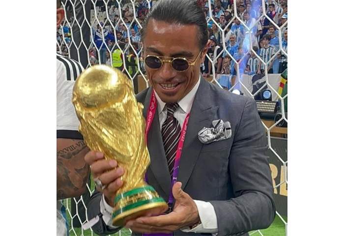 Nusret Gokçe, apodado Salt Bae, es dueño de una cadena de restaurantes de lujo. Tras la victoria de Argentina contra Francia, se hizo algunas fotos sobre el césped con Lionel Messi, Angel Di Maria y otros campeones del mundo.