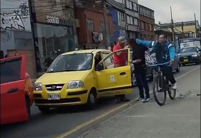 Acto seguido, el ciclista le reclama por el trancón que ambos han provocado en la vía y sigue su camino tranquilamente.