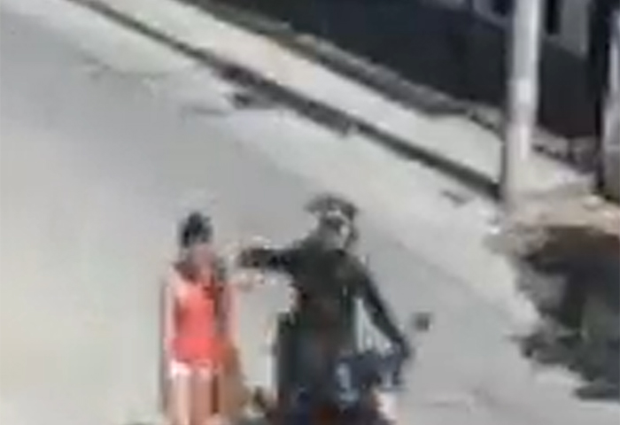 En las imágenes se evidencia el momento en que una mujer va caminando hablando por celular y de repente aparece un individuo a bordo de una motocicleta y se lo arrebata.