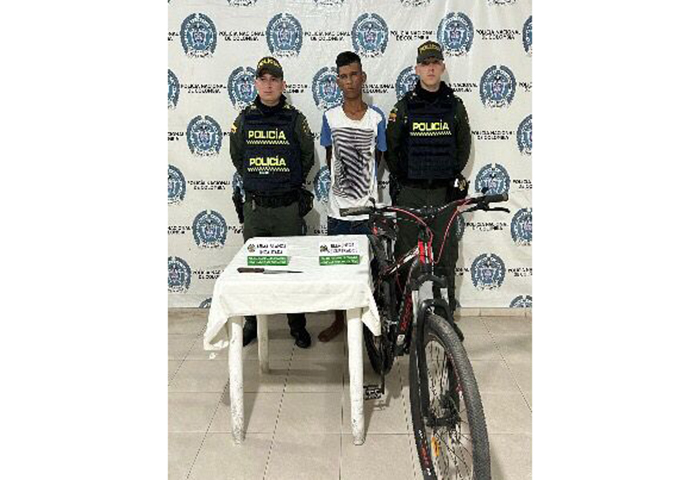 En la manzana 34 del barrio Garupal, del municipio de Valledupar, fue capturado mediante patrullajes, registro y control, Jhonatan David Torres Flores de 22 años, quien minutos antes había robado la bicicleta a un ciudadano intimidándolo con un arma cortopunzante.