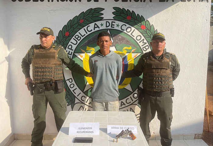 En el marco de la estrategia contra el hurto y la extorsión, en las últimas horas en desarrollo de planes de vigilancia y control, uniformados del Modelo Nacional de Vigilancia por Cuadrantes; lograron la captura en flagrancia de alias “Pinta paloma”, a quien le hallaron en su poder un arma de fuego ilegal, en zona céntrica del corregimiento de la Loma de Calenturas, municipio de El Paso, Cesar.