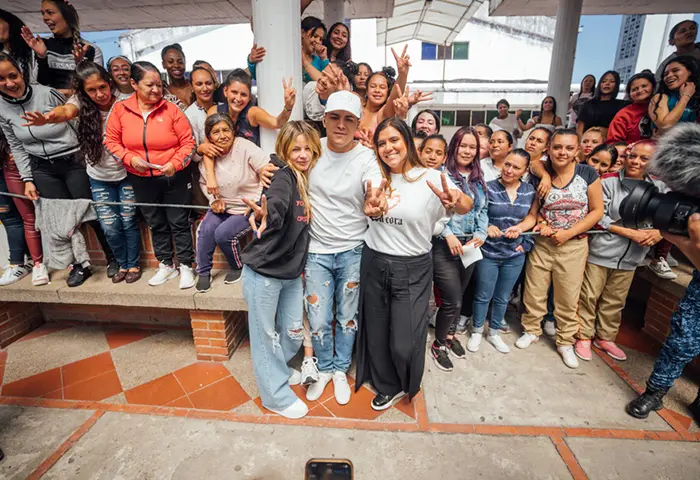 El artista de música popular sorprendió a más de 600 reclusas del Centro Penitenciario El Buen Pastor de Bogotá, por una invitación de las fundaciones ‘Con Cora’ de Karol G y ‘Acción Interna’ de Johana Bahamón, en el Mes de la Mujer y con el propósito de llevar un mensaje positivo y de segundas oportunidades para la población carcelaria.