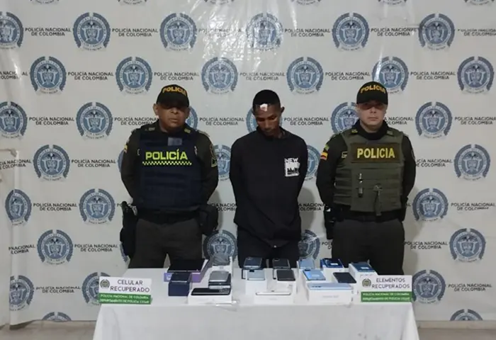 José Zuñiga, de 35 años, fue capturado por personal del Modelo Nacional de Vigilancia Comunitaria por Cuadrantes de la Policía Nacional, por el robo de teléfonos celulares y otros equipos de comunicación, de un establecimiento comercial ubicado en la calle 17 con carrera 10, municipio de Valledupar.