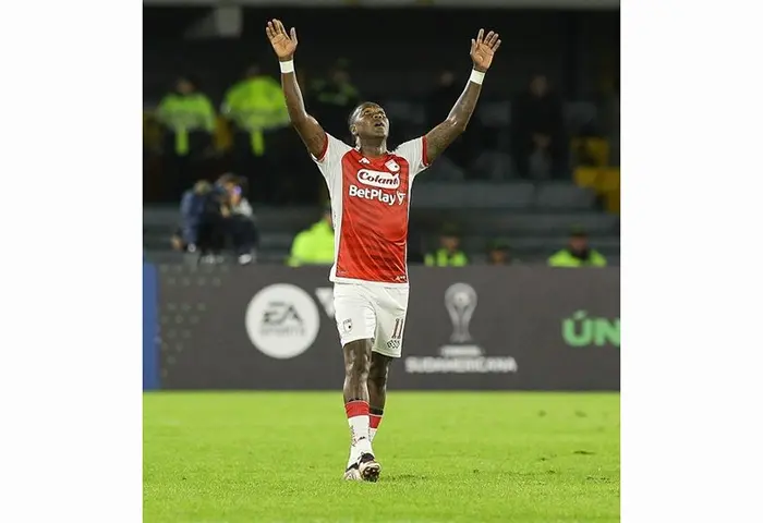 “Sobre la hora, el histórico Hugo Rodallega le dio la victoria a Santa Fe”, publicó Conmebol junto al video de la anotación del jugador que aprovechó el buen pase de Jersson González para definir frente al arco de Durso que no tuvo reacción para impedir que los bogotanos ganaran sobre la hora un partido clave para seguir en camino de la clasificación a octavos de final.