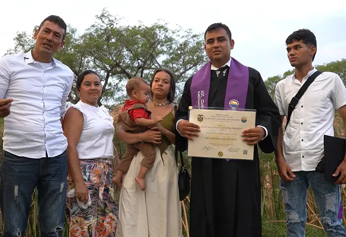 “Primeramente, darle gracias a Dios por este logro de mi hijo, me siento muy orgulloso, contento y feliz y agradezco a la Universidad del Magdalena por esa facilidad que da para que nuestros hijos se capaciten y salgan adelante”, puntualizó Juan Carlos Ballesteros Quintero, padre de Juan Carlos Ballesteros Pacheco, graduado como Profesional en Deporte.