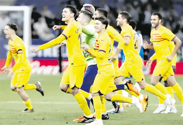 El Barcelona ganó su 27ª Liga al imponerse 4-2 en el campo del Espanyol en la 34ª jornada, a falta de cuatro fechas para el final para dar alas el proyecto liderado por Xavi Hernández.