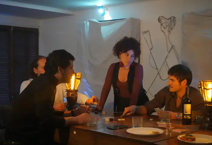 Encerrados en un universo hermético, cristalizados, entre las paredes de la casa de uno de ellos y a través de los innumerables sucesos que tienen que ver con la cotidiana convivencia, caerán las máscaras que los mantiene unidos en una supuesta amistad y entrar en una perversa confrontación entre ellos y sus propias vidas, dejándolos desprovistos de cualquier mampara, cualquier defensa, derrumbando esa muralla que los seres solemos construir para alterar la realidad.