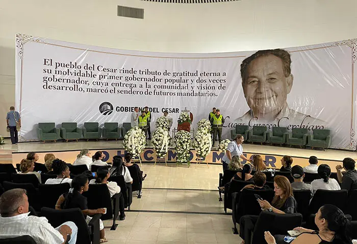 En el auditorio Luis Rodríguez Varela, de la Biblioteca Departamental, el pueblo cesarense rindió homenaje póstumo al exgobernador Lucas Gnecco, quien falleció la tarde del viernes en una clínica de Medellín, a causa de afectaciones cardíacas.
