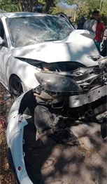 Las dos personas iban a bordo de un vehículo Mazda 3, de color blanco, placas CPX-253, el cual impactó contra un árbol a un lado de vía. El conductor quedó inconsciente y su acompañante recibió un fuerte golpe en la cabeza, por lo que fueron auxiliados y trasladados de urgencia a la clínica.