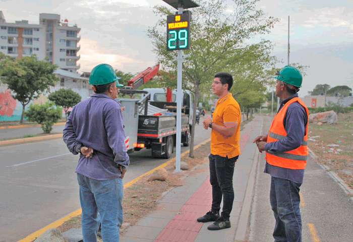 El secretario de Tránsito, Alberto Daza Sagbini indicó que estos dispositivos electrónicos tienen como objetivo persuadir a los conductores para que reduzcan la velocidad, mejorando así la seguridad vial del tramo.