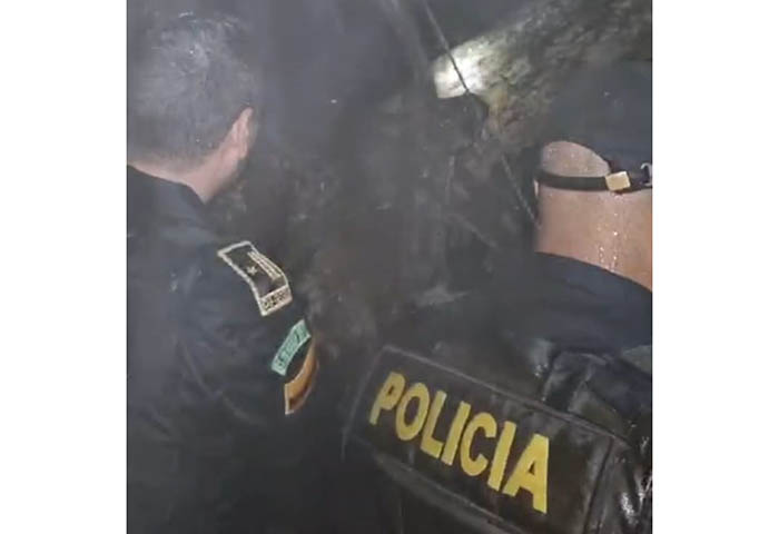 La oscuridad del sector y un torrencial aguacero que caía en la zona, casi imposibilitaba la dramática acción de rescate, sin embargo, los uniformados lograron llevarlos a la orilla a través de árbol ante la amenaza de la fuerte corriente de agua.
