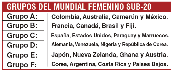 ¡Todo está listo para el Mundial Femenino sub-20 de la FIFA que se disputará en Colombia! Este miércoles en el Hall 74 de la ciudad de Bogotá, el máximo organismo del fútbol mundial realizó el sorteo con las 24 selecciones que disputarán el certamen, las cuales estarán divididas en seis grupos de cuatro equipos. La Selección debutará ante Australia el 31 de agosto en El Campín. La Selección Colombia al oficiar como local fue posicionada como cabeza de serie del Grupo A y enfrentará a las selecciones de Australia, Camerún y México. Esta será la tercera participación del equipo nacional en el certamen, que por segunda vez en la historia se disputará en Sudamérica. El campeonato se jugará del 31 de agosto al 22 de septiembre entre Bogotá, Cali y Medellín. Las 24 selecciones quedaron divididas en seis grupos. Los dos mejores de cada zona y los cuatro mejores terceros avanzarán a la fase final, en la cual se disputarán llaves de octavos de final, cuartos de final, semifinal y la gran final para conocer la nueva selecciona campeona. / COLPRENSA