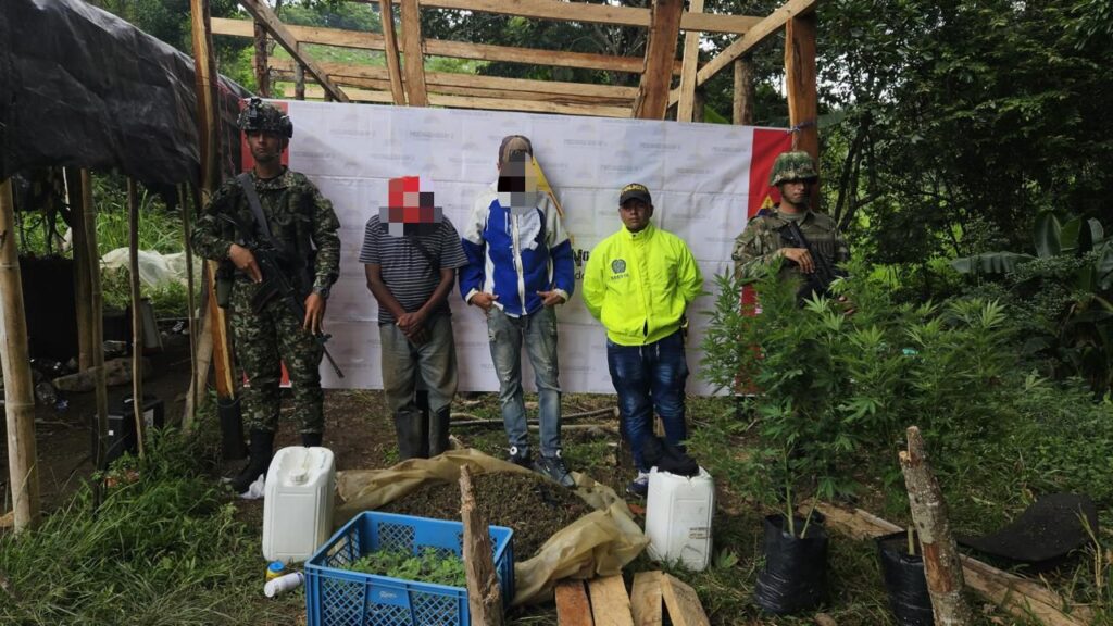 Las dos personas capturadas, que estarían vinculadas a las estructuras delincuenciales organizadas, fueron detenidas por conservación o financiación de plantaciones, y puestas a disposición de las autoridades competentes para su respectiva judicialización.
