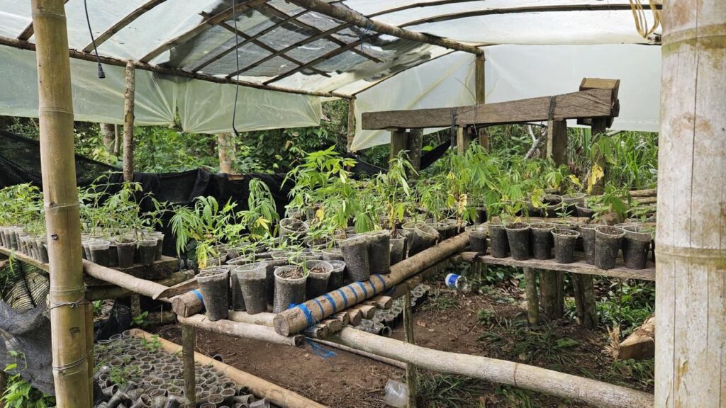 La estructura tenía 100 kilogramos de la sustancia psicotrópica avaluados en $150.000.000 aproximadamente; de igual forma, 5000 plántulas y 4 hectáreas sembradas con marihuana.