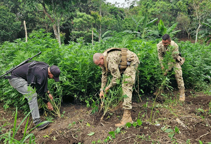 La estructura tenía 100 kilogramos de la sustancia psicotrópica avaluados en $150.000.000 aproximadamente; de igual forma, 5000 plántulas y 4 hectáreas sembradas con marihuana.