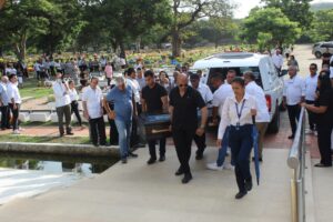 Después del oficio religioso realizado en la Capilla del Cementerio Jardines de Paz, donde asistieron familiares, entre ellos su hijo Alex García King, exarquero del Unión Magdalena, todos la acompañaron hasta el lugar donde se producirá su cremación.