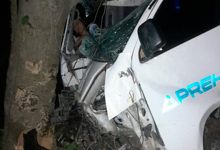 Ambulancia se estrelló contra un árbol, heridos la enfermera y el chofer