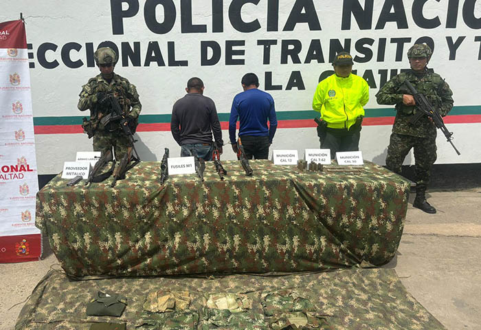 Así mismo, se les incautaron 4 fusiles, 2 escopetas, cartuchos de diferentes calibres, y fue hallado material de intendencia de uso privativo del Ejército Nacional.