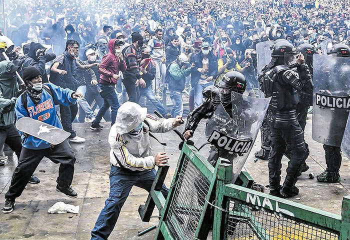 En las manifestaciones y protestas callejeras los desadaptados y delincuentes la emprenden contra la fuerza pública, generalmente policía, a quienes golpean, escupen, y amenazan. Inclusive en el llamado estallido social, unos criminales incendiaron varios CAIs y el propósito era quemar vivos a los uniformados que allí se encontraban. Los policías reaccionaron y defendieron sys vidas.