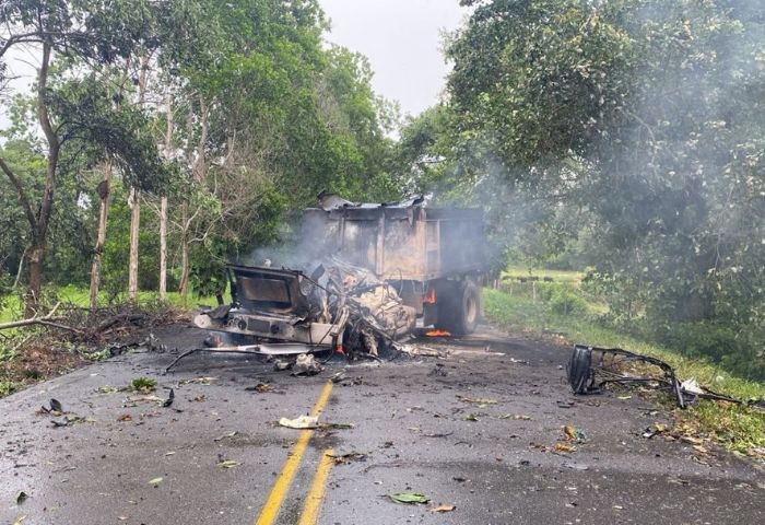 Cabe recordar que, el día de los hechos, los presuntos guerrilleros del ELN lanzaron cilindros desde una volqueta.