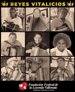 La Fundación Festival de la Leyenda Vallenata declaró a nueve reconocidos acordeoneros como Reyes Vitalicios por su talento, creatividad, aportes al concurso de acordeoneros en sus diferentes categorías y entrega total a la música vallenata, a la que a través de su larga carrera le han dado trascendencia y una proyección adecuada.
