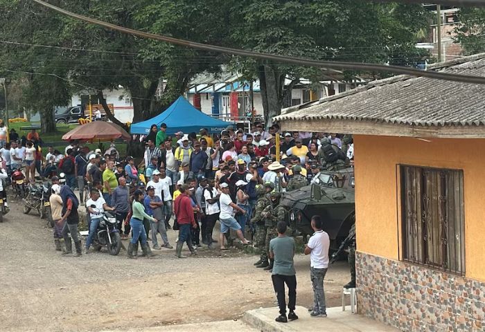 La comunidad rodeó los vehículos del Ejército y pidió a los militares detener la operación. Según el reporte preliminar que entregó el Comando General de las Fuerzas Militares, son al menos 14 heridos.