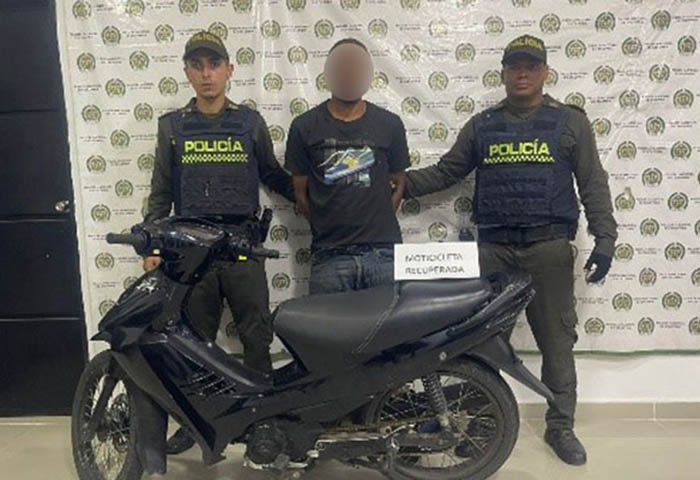 Gracias a la información de la ciudadanía y los patrullajes preventivos, sobre el barrio Nuevo, en el municipio de Pelaya, lograron dar captura a este sujeto, quien momento antes se había hurtado una motocicleta marca Suzuki, color negro, de placas FKL35A. El automotor fue recuperado y próximamente será devuelto a su propietario, informó el coronel Eduardo Chamorro Pinzón, comandante del Departamento de Policía Cesar.