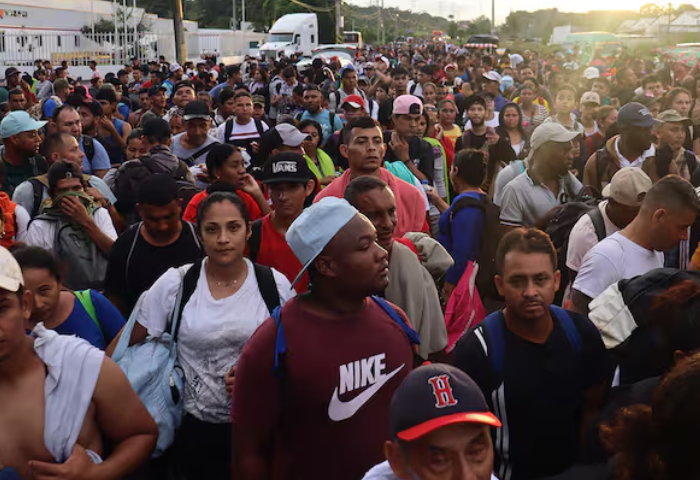 Douglas Bryan Velázquez, portavoz y representante del grupo, informó a la Guardia Nacional que este grupo, compuesto por personas provenientes de Venezuela, Colombia, Ecuador, Honduras, El Salvador y Guatemala, inició su travesía en la madrugada como parte de una nueva caravana que busca llegar a la frontera estadounidense antes del 20 de enero.
