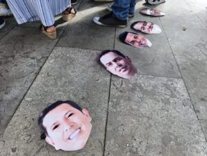 Con caretas del rostro de los diputados del Cesar, los manifestantes llegaron hasta la sede de la Gobernación para rechazar la posible aprobación de la Tasa de Seguridad que aplicarían a los estratos 4, 5 y 6.