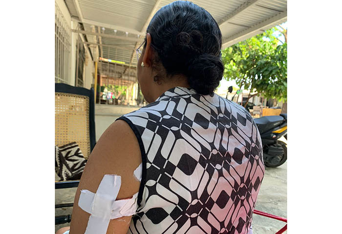 “Me llené de mucho miedo, y de inmediato mi compañera se devolvió y me llevó al centro asistencial. La herida fue superficial, pero los médicos me dijeron que un centímetro más y se incrusta en los pulmones, lo que pudo haber causado un desenlace fatal”, aseguró Ramírez.