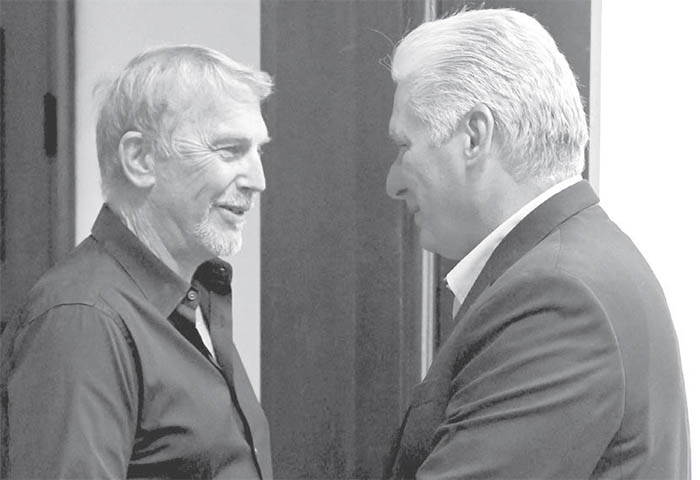 El presidente de Cuba, Miguel Díaz-Canel, recibió en La Habana al actor estadounidense Kevin Costner, quien visita la isla como parte de un proyecto de arqueología submarina, informó el propio mandatario.