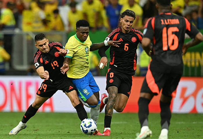Con un golazo de Vinícius Jr en el tiempo de descuento, Brasil venció 2-1 a Colombia este jueves en Brasilia y ganó una nueva vida en la eliminatoria sudamericana para el Mundial norteamericano de 2026.